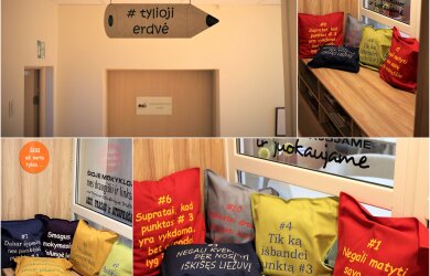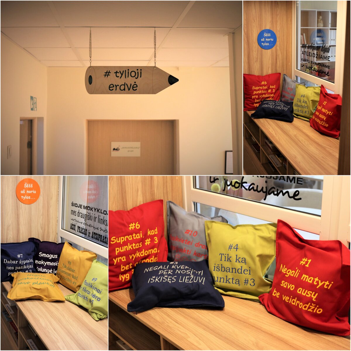 Įstaigoje įrengtos tokios erdvės kaip "Mamos apkabinimas", "Tylos zona", "Meškiukų alėja", "Patirčių siena" ir kt., skirtos mokinio nusiraminimui, poilsiui ir atsipalaidavimui.