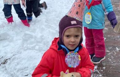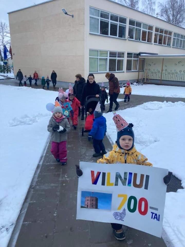 Bitučių grupės ugdytiniai, sostinės jubiliejaus proga, surengė šventinę eiseną - 700 žingsnelių Vilniui. Šventėje dalyvavo ne tik mamytės ir tėveliai, bet ir mažieji broliukai. Vaikai buvo pasipuošę ypatingomis gimtadienio kepurėlėmis - Gedimino pilies bokštais, pasiruošę originalių plakatų apie Vilnių.