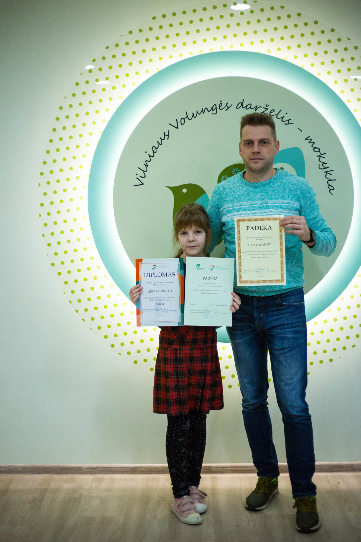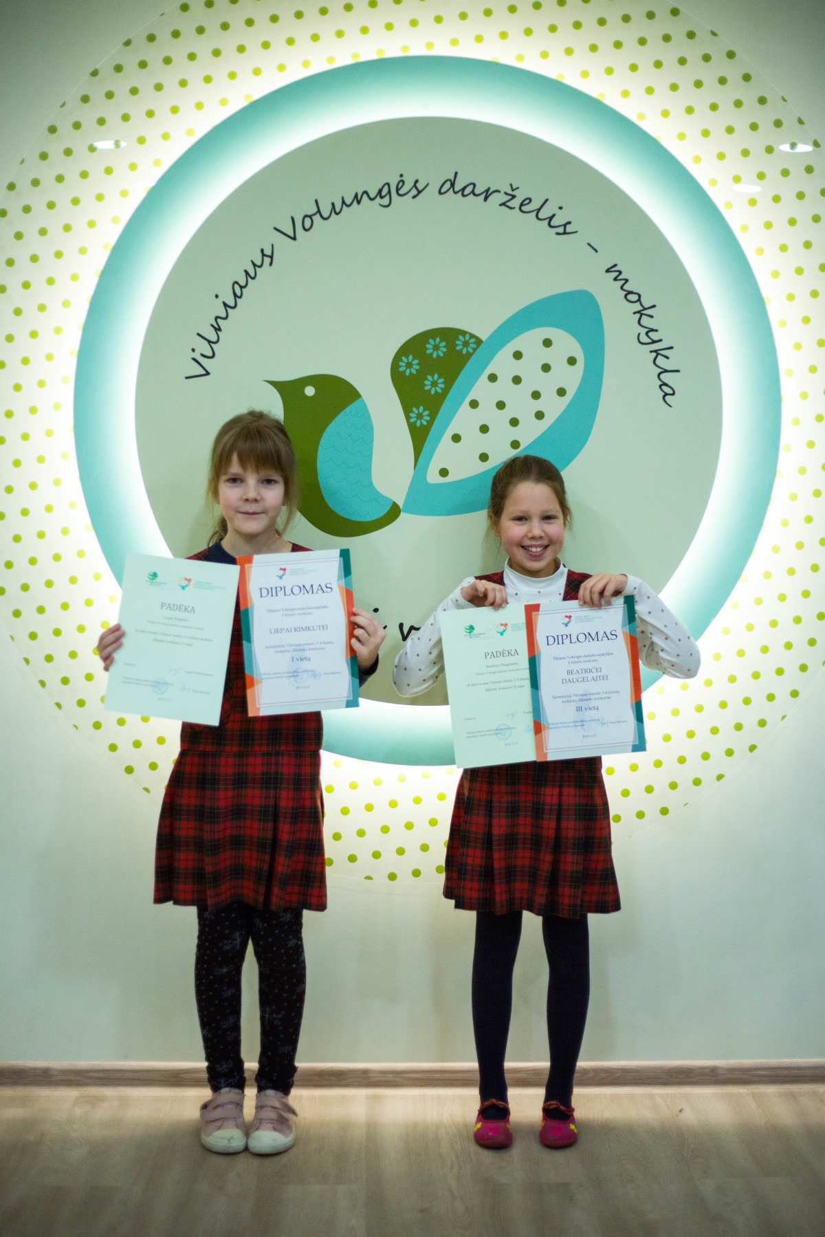 2019 lapkričio 27 d. 3 klasės mokinė Liepa Rimkutė (mokytojas A. Papartis) ir 4 klasės mokinė Beatričė Daugėlaitė (mokytoja B. Kairytė) dalyvavo Vilniaus miesto 3-4 klasių mokinių diktanto konkurse. SVEIKINAME L. RIMKUTĘ SU PIRMĄJA VIETA (0 klaidų), O B. DAUGĖLAITĖ SU TREČIĄJA VIETA (1 klaida)!