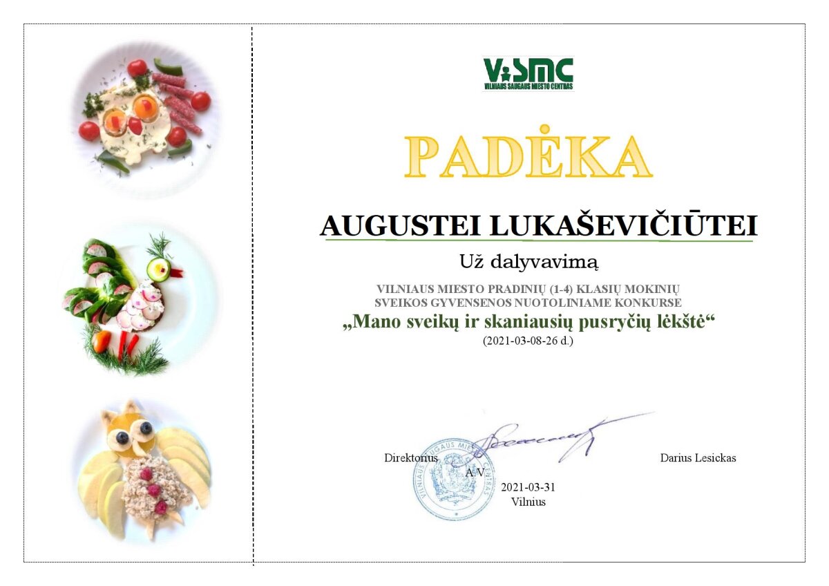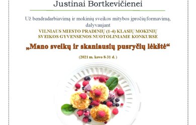 Vilniaus saugaus miesto centras organizavo Vilniaus miesto pradinių klasių mokinių sveikos gyvensenos nuotolinį konkursą „Mano sveikų ir skaniausių pusryčių lėkštė“.