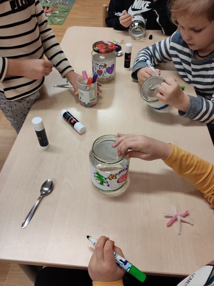 Galiausiai „Drugelių“ grupėje buvo kalbama apie žiemą ir iš ko sudarytos snaigės. Blizgančias snaiges ugdytiniai bandė pasidaryti grupėje, tik jų kristalai buvo kiek kitokie – iš druskos. Šiandien jau matome rezultatus!