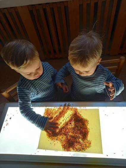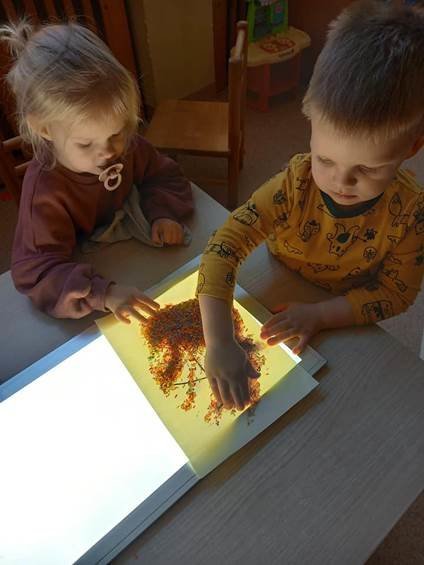 Paskutiniąją lapkričio savaitę, kalbėdami apie knygeles, „Zyliukai“ turėjo labai įdomią dieną – jos metu ne tik skaitė knygeles, bet eksperimento „Paslėptos raidelės“ metu, bei šviesos lentos dėka tyrinėjo, kas slepiasi po spalvotomis kruopytėmis. Vaikai bandė atrasti paslėptas raides tamsoje, tačiau tuomet nieko nerado ir eksperimentas nepavyko... Vėliau, įsijungę šviesos lentą - dar kartą pabandė atrasti, kokios raidės slypi po spalvingu ryžių sluoksniu. Ir, nepatikėsite, bet jiems PAVYKO! Vaikai nudžiugo atradę raideles „A“ ir „B“. Ši veikla parodė, kad ir namie knygelių tamsoje mes perskaityti negalime – tam reikalinga šviesa.