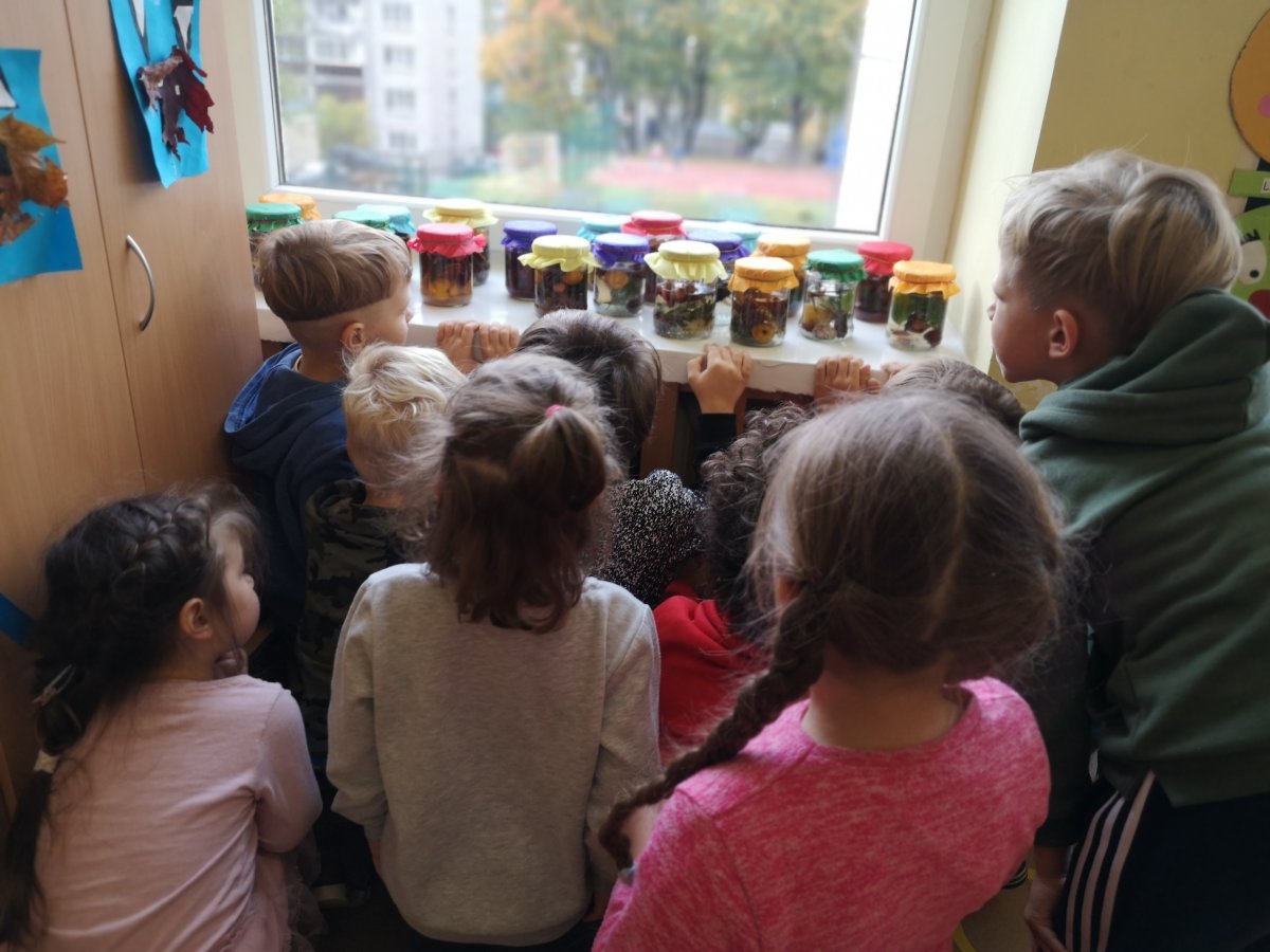 Po ilgų savaitės temų aptarimų apie Lietuvos miškus, medžių lapus, jų sandarą, apie miško ir medžių gyventojus, apie visas gamtines miško medžiagas, taip pat apie rudens daržo ir sodo gėrybes su vaikais nusprendėme sustabdyti rudens gamtos grožio laiką ir užkonservuoti patį rudenį. Nes ruduo ir konservavimas – du neatsiejami dalykai!