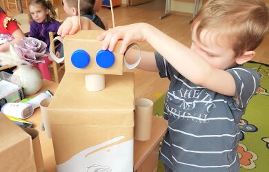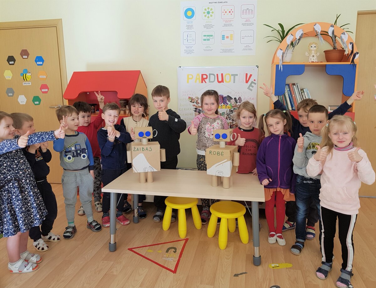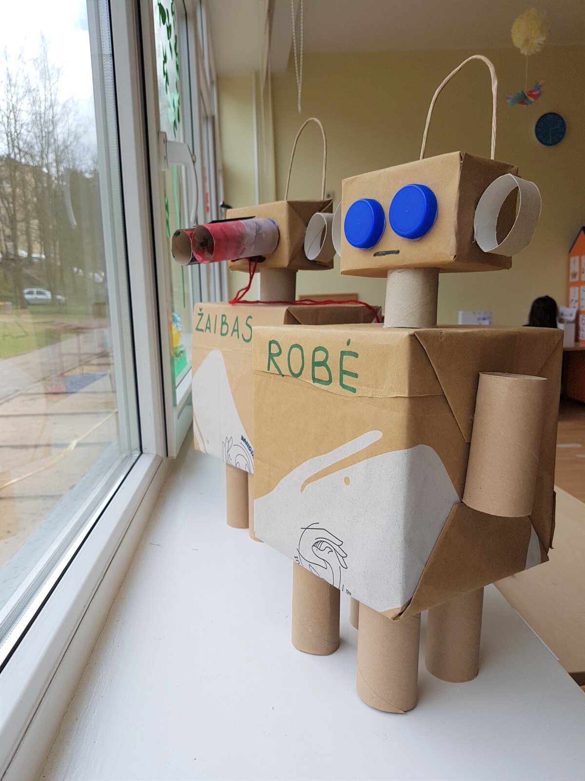Dar vienas atliekų gyvavimas – robotukai Žaibas, Robė ir jų „stebuklingi“ žiūronai. „Skruzdėliukų“ grupės vaikai išgelbėjo robotus nuo šiukšlių kibiro. Dabar naujieji vaikučių draugai stebi pro langą, kad darželio kieme niekas nešiukšlintų. Mažiesiems ugdytiniams buvo smagu kurti, konstruoti iš panaudotų popieriaus ritinėlių, kartoninių pakuočių, plastikinių kamštelių ir tuo pačiu tausoti gamtą.