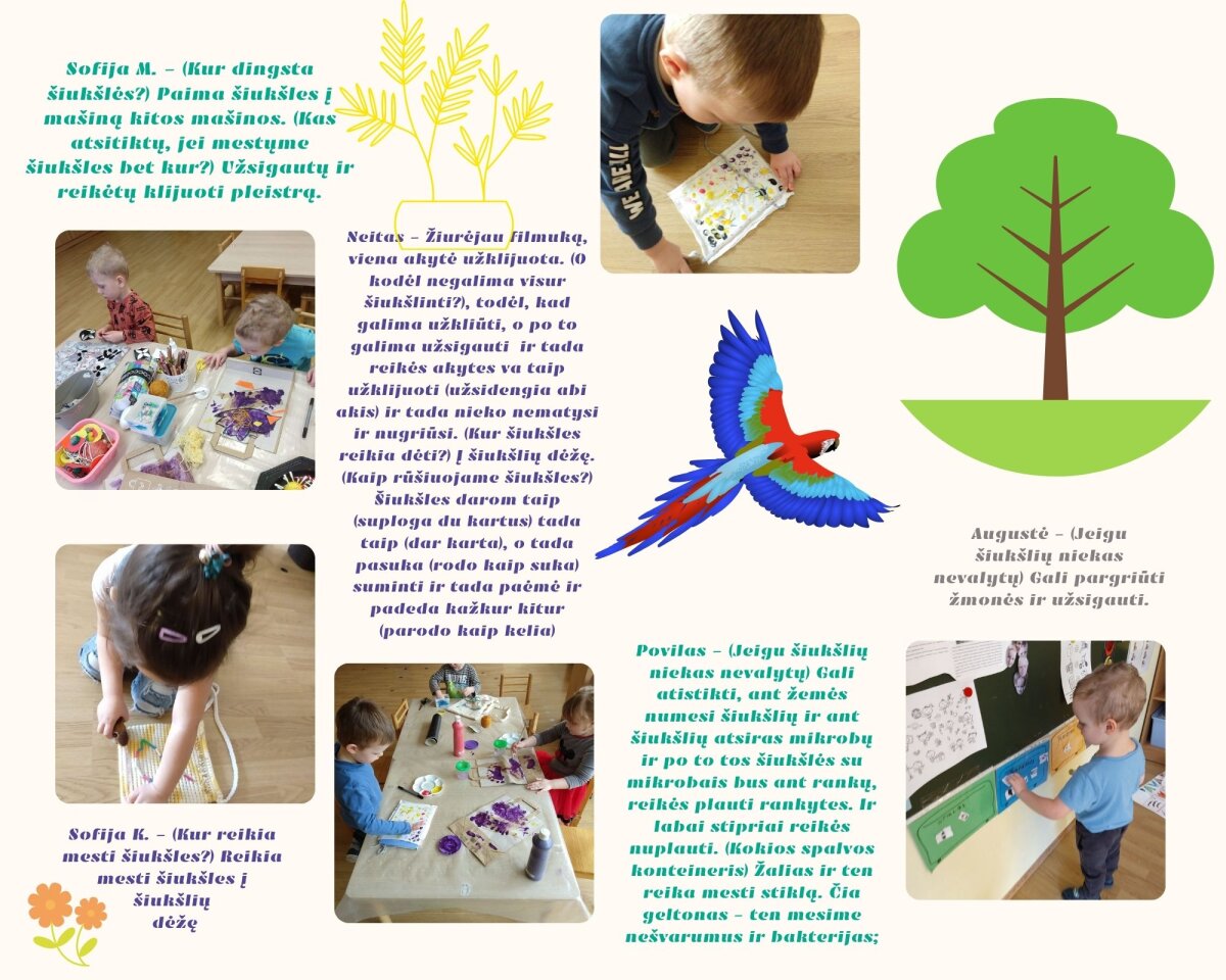 2. Atkreipti dėmesį į ekologines problemas bei ieškoti bendrų aplinkosaugos sprendimo būdų, diskutuojant su ugdytiniais.