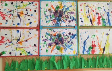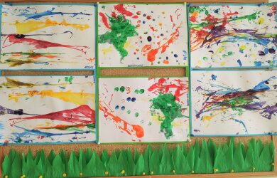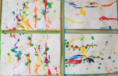 Sužadinti smalsumo ir vedami kūrybinio džiaugsmo, siūlų pagalba, vaikai piešė gėlytes mamai. Dažant siūlais, žaidžiant skirtingų spalvų intensyvumu, vaikai sukūrė nuostabius atvirukus.