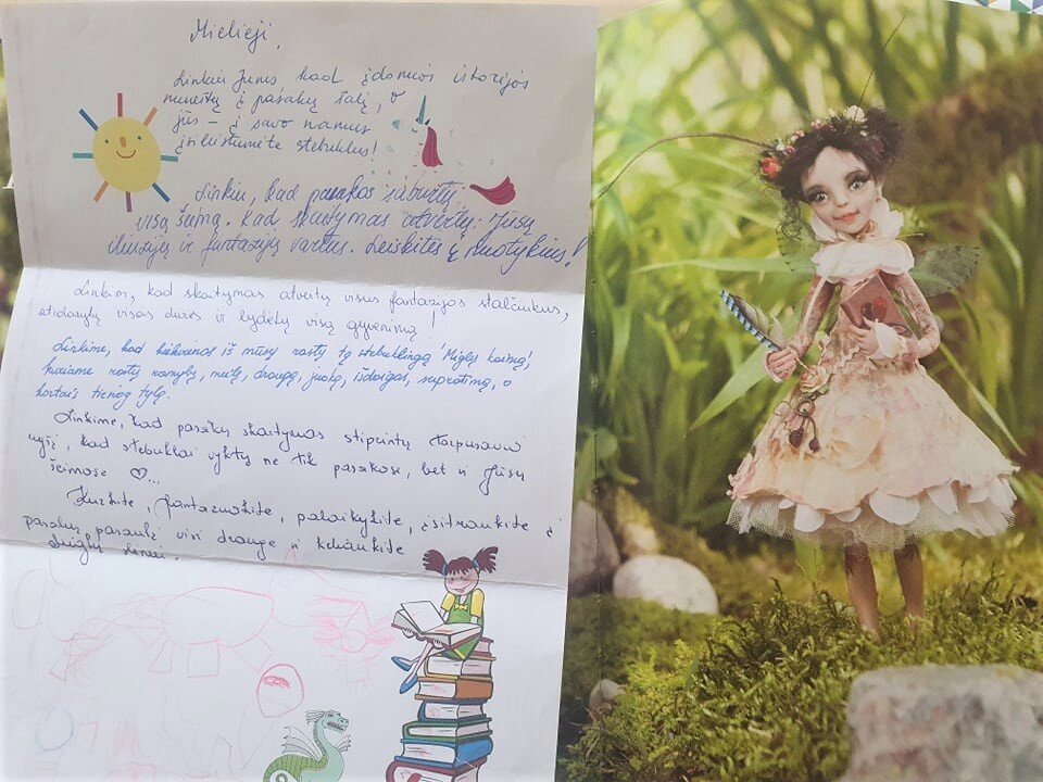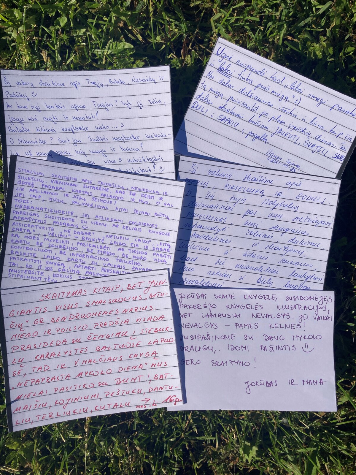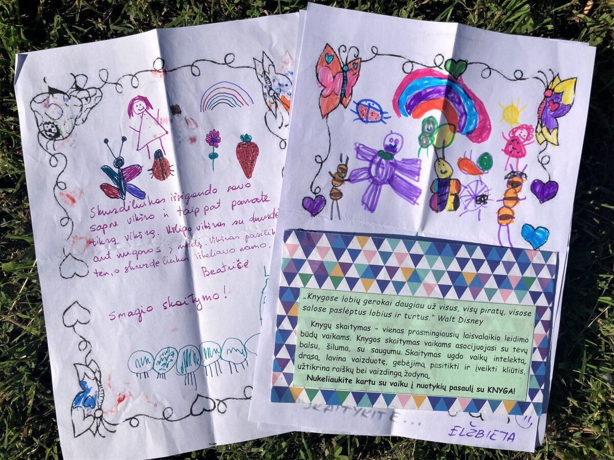 Šįkart knyga tapo tarpininku tarp kartų. Perskaitę knygos skyrių, tėvai kartu su vaikais laiške rašė linkėjimą kitai šeimai. Smagu buvo ir skaityti knygas kartu su tėvais, ir rašyti linkėjimus, nes skaitymas yra auksinis bilietas į vaiko sėkmę.