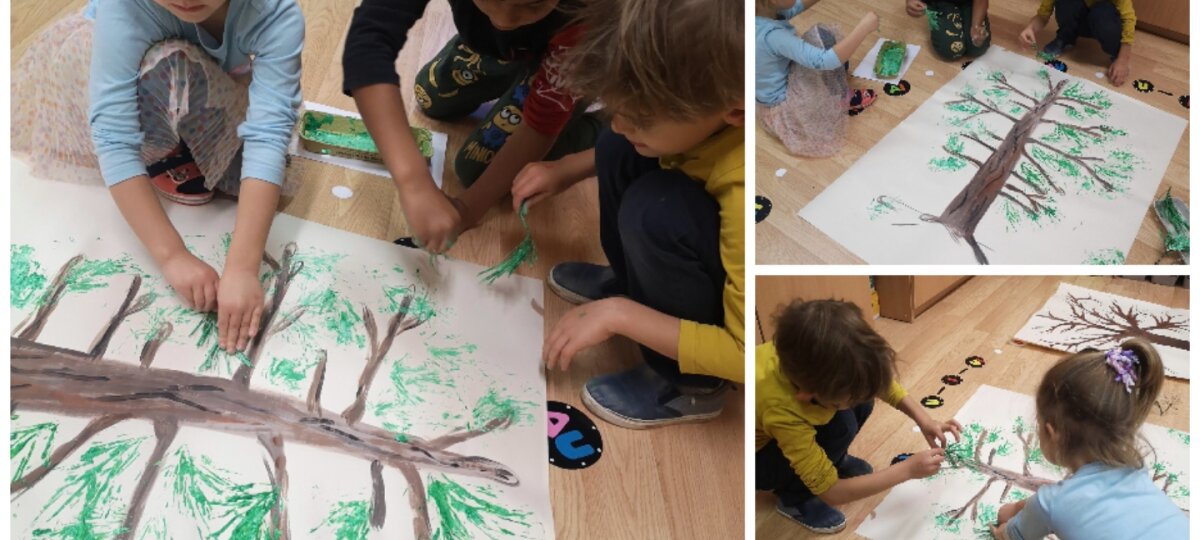 O grįžę į grupę, klausydami įrašo apie Stelmužės ąžuolo įdomius faktus, pelėdžiukai su akvarele bandė nupiešti savo medį karalių.
