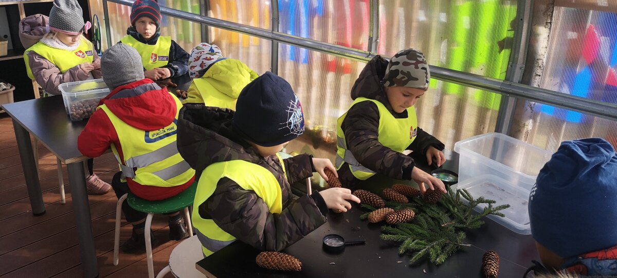 - Savo medžio vaisius: eglės ir pušies kankorėžius (juos lygino, ieškojo skirtumų bei panašumų), ąžuolo giles (aptarė gilės formą), beržo vienasėklis riešutėlis su dviem sparneliais (beržo vaisių apžiūrėjo nuotraukose, nes žinome, kad beržai žydi ankstyvą pavasarį);