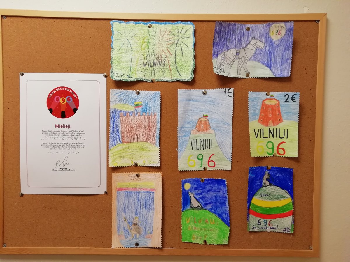 Volungės darželio-mokyklos vaikai kartu su darželio-mokyklos bendruomene sveikino Vilniaus miestą su gimtadieniu savo sukurtais darbeliais.