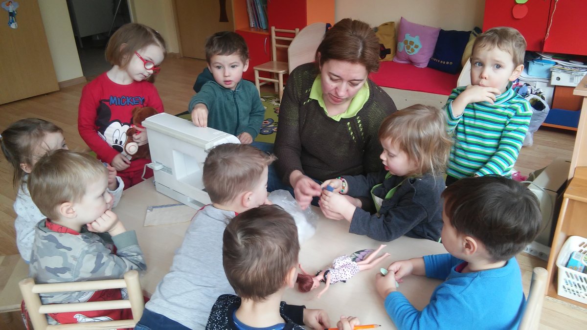 Geras siuvėjas visais laikais – gerbiamas ir visiems reikalingas žmogus. „Skruzdėliukų“ grupėje vaikai susipažino su siuvėjo profesija. Vaikams buvo papasakota ir parodyta, kaip galima pasiūti norimą drabužėlį ar žaisliuką. Siuvome mažus mėlynus ir raudonus paukštelius. Kiekvienas galėjo prisėsti ir išbandyti, kaip veikia siuvimo mašina. Vaikai, padedami auklėtojos, siuvo paukštelius, juos kimšo sinteponu ir vėl susiuvo. „Skruzdėliukų“ grupės vaikai gėrėjosi pasiūtais raudonais, mėlynais paukšteliais ir džiaugėsi galėję išbandyti jiems neįprastą siuvėjo profesijos amatą.