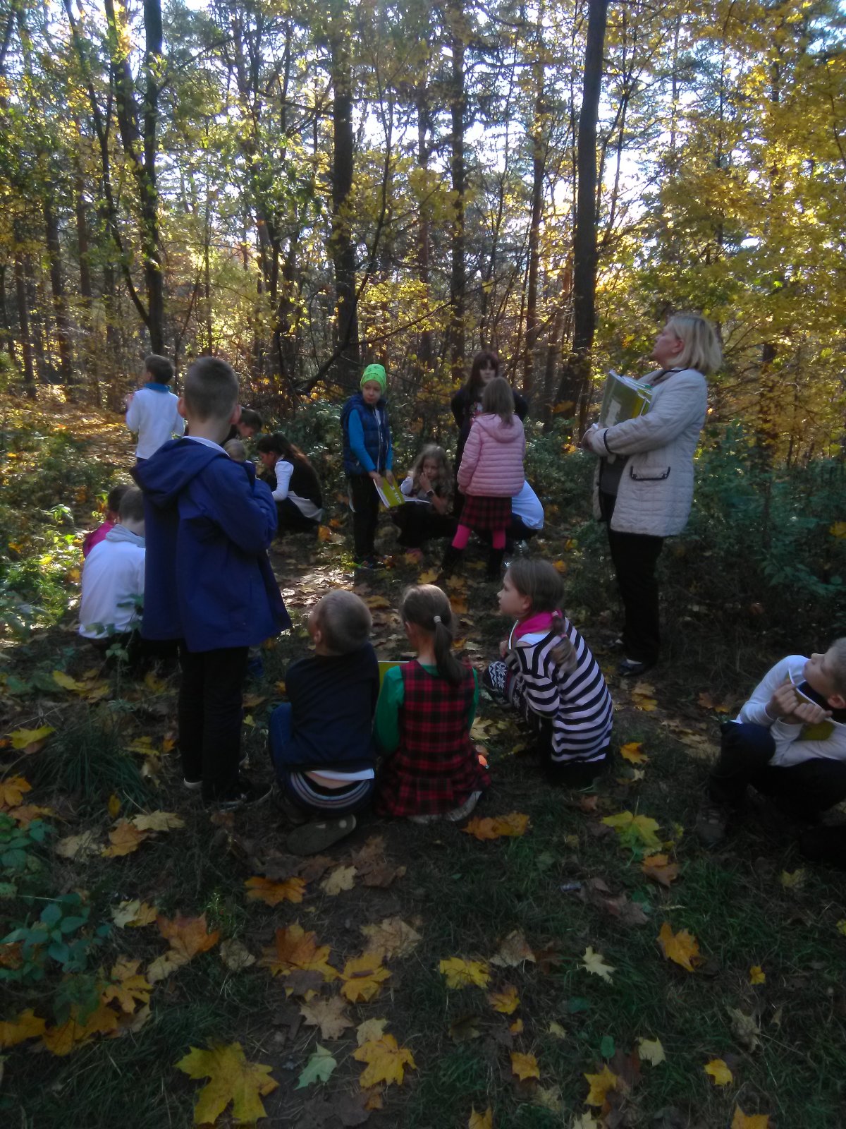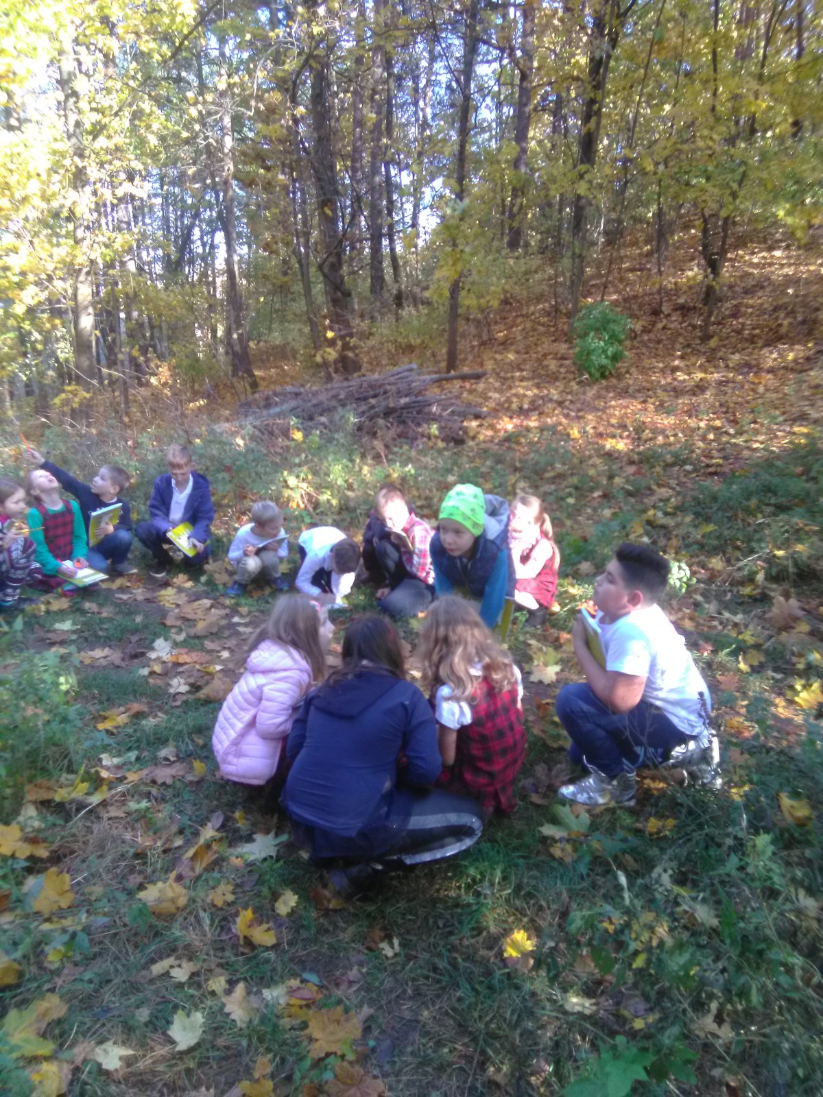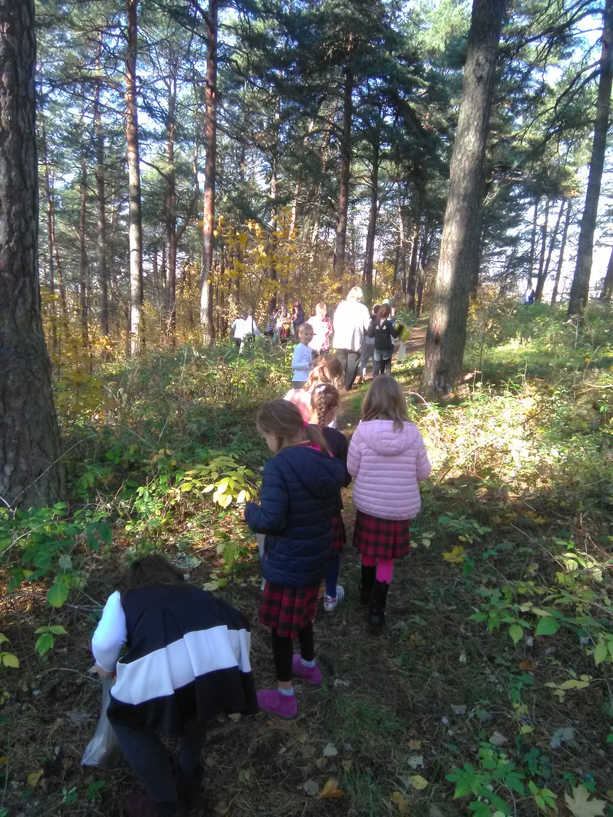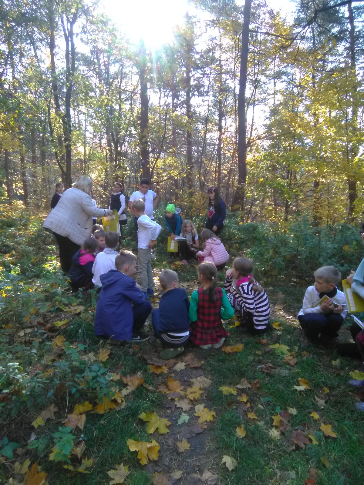 Spalio 19 dieną antros klasės mokinių pasaulio pažinimo pamoka vyko šalia darželio-mokyklos esančiame miškelyje.