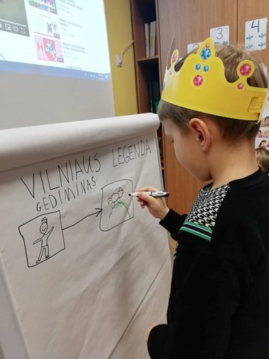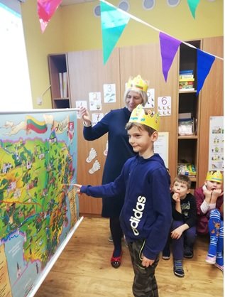 Sausio 24 d. „Pelėdžiukų“ ir „Žiogelių“ grupių vaikai kartu šventė Vilniaus gimimo dieną. Kartu vaikai išsiaiškino nepaprasto skaičiaus 697 svarbą gimtam miestui, klausėsi legendos apie miesto įkūrimą, prisiminė Lietuvos valstybės kaimynes... Veiklos metu vaikai naudojosi "įdomiu", "nauju" įrankiu - sekos žemėlapiu... Žinoma, kokia gi šventė be kūrybinės veiklos, tad pasiraitoję rankoves lipdėme Gediminą, Lizdeiką, vilką, piešėme pilį, konstravome gynybinę sieną...