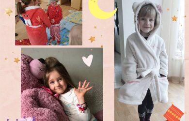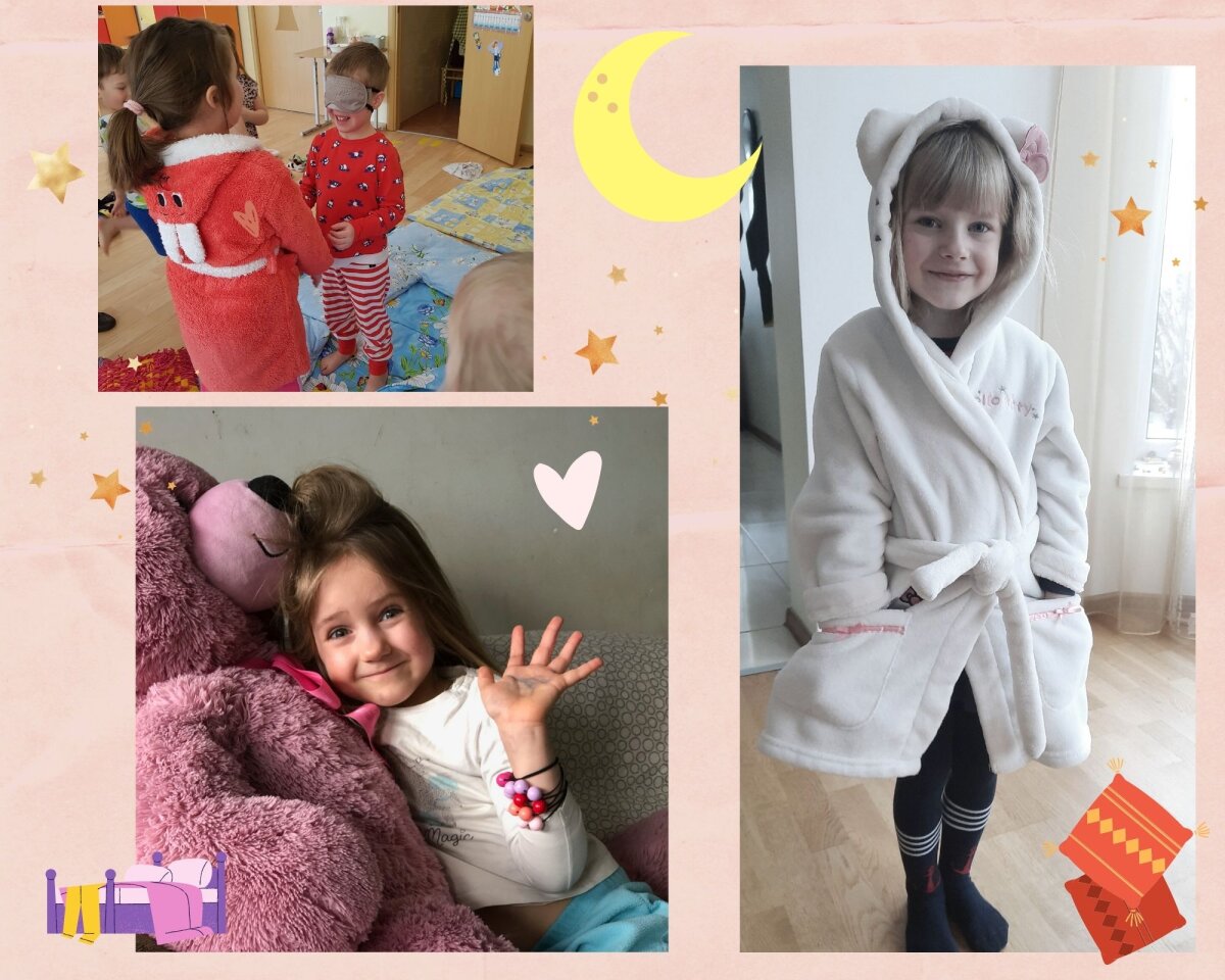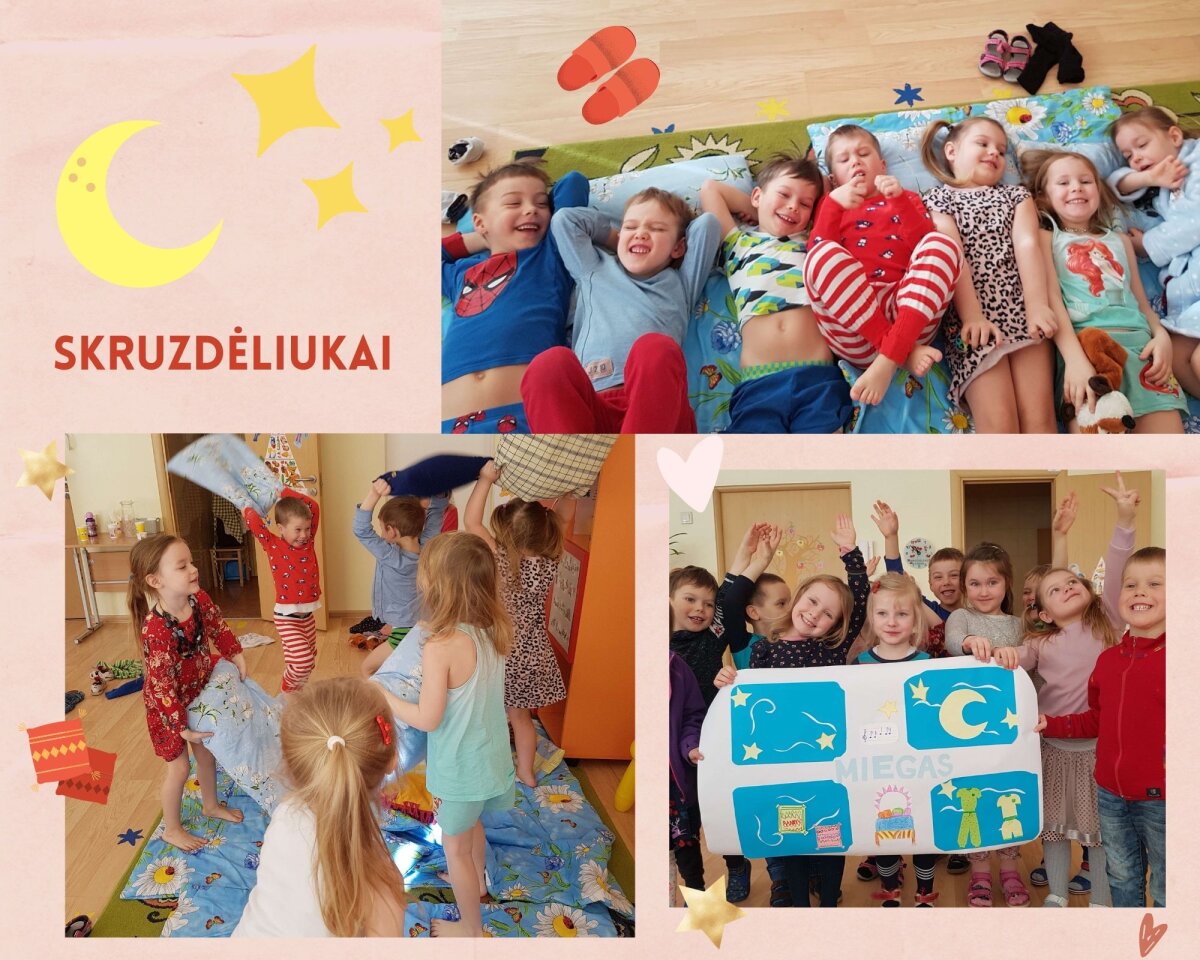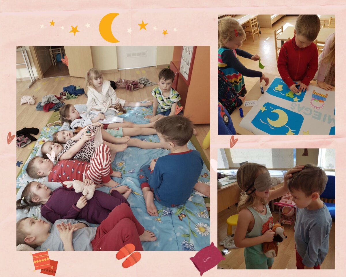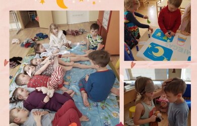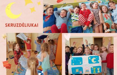 Darželyje-mokykloje skambėjo lopšinių melodijos, mokiniams vyko integruotos kūno kultūros ir etikos pamokos, fotosesija, atliktos kūrybinės užduotys, naudojant mąstymo žemėlapius, o dienos „vinimi“ tapo grupes aplankę, pižamomis ir chalatais pasipuošę svečiai – direktorė Edita, pavaduotojas Adas ir didžiulis pliušinis meškinas (įamžintas akimirkas rasite mūsų Volungės darželio – mokyklos Facebook paskyroje). Vėliau veiksmas persikėlė į virtualią erdvę, kur vyko „šauniausios pižamos“ rinkimai. Dalyvavo virš 30 šaunių „miegalių“, I vietos nugalėtoja išrinkta 2 klasės mokinė Kamilia.