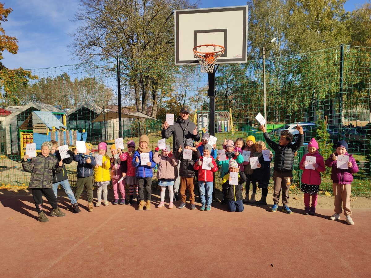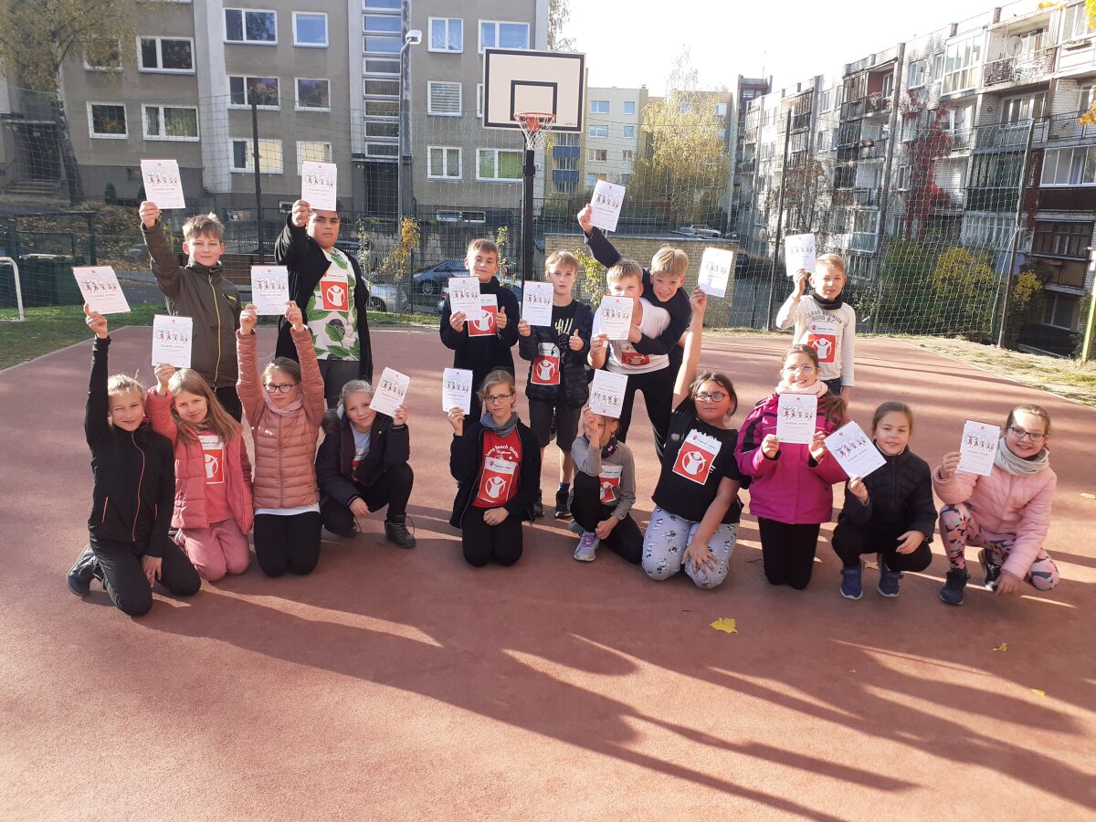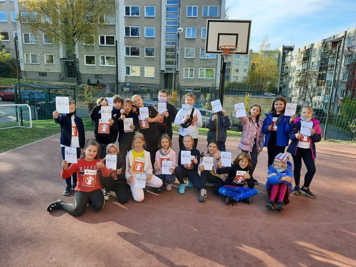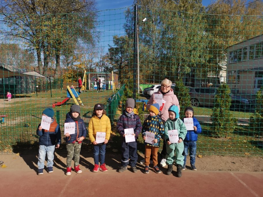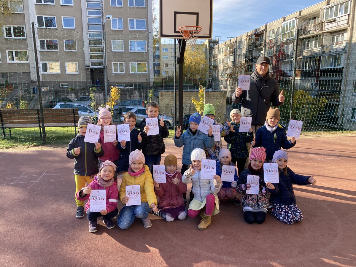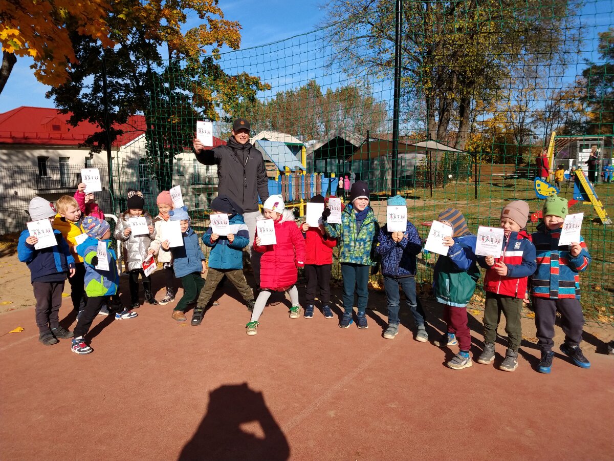 Skambant muzikai įstaigos kieme, vaikai aktyviai įsitraukė į sportinę veiklą. Gerokai pasimankštinę ir apšilę pasileido bėgti aplink darželį - mokyklą. Nubėgę reikiamą atstumą ir pasiekę finišą, visi vaikai buvo apdovanoti diplomais.