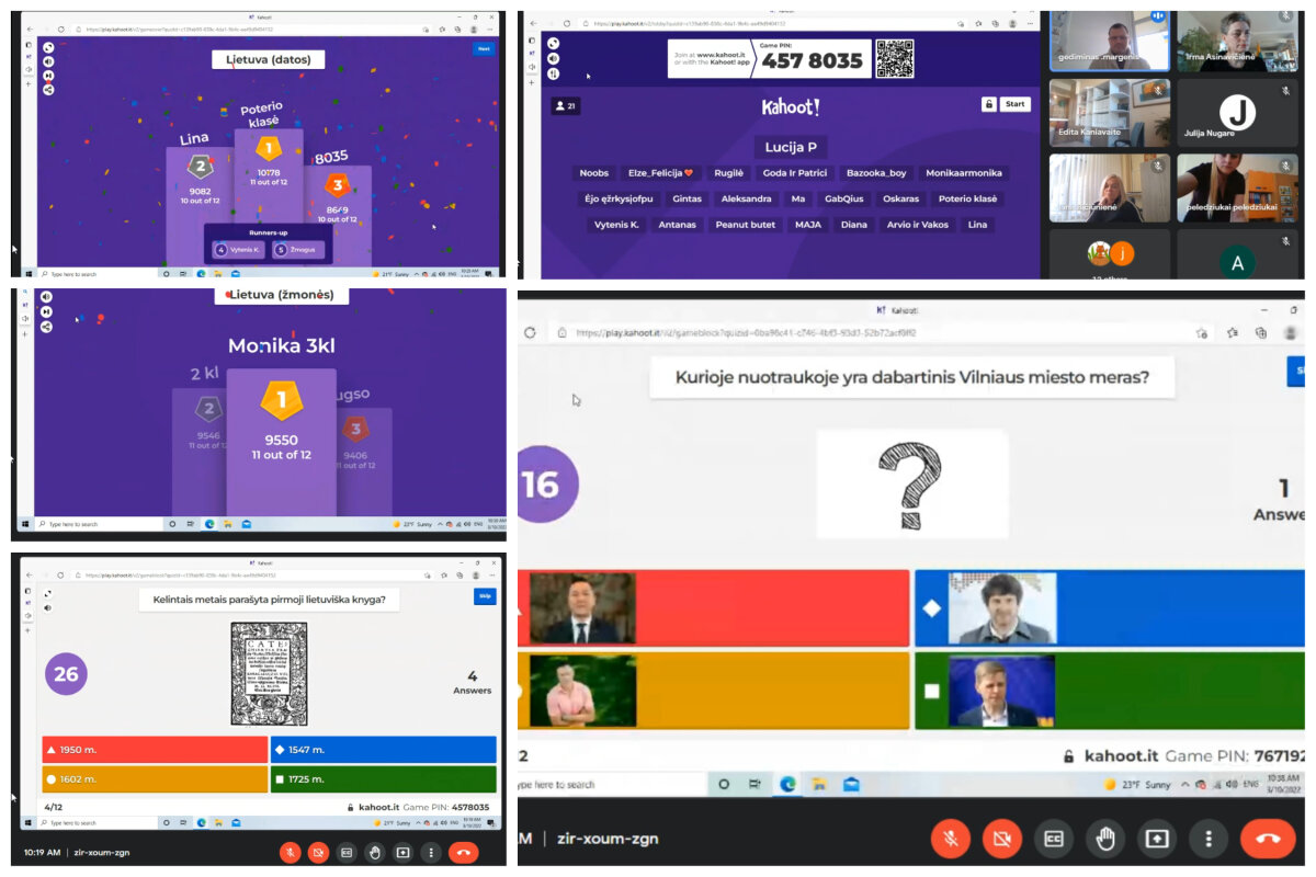 Toliau sekė kitos veiklos: mokyklinukams - trijų dalių kahoot viktorina, kurioje visi 36 klausimai buvo susieti su žiniomis apie Lietuvą. O jūs ar žinote, kuriais metais pirmą kartą paminėtas Lietuvos vardas? Kas parašė pirmąją lietuvišką knygą? Kada įkurtas Vilniaus universitetas?
