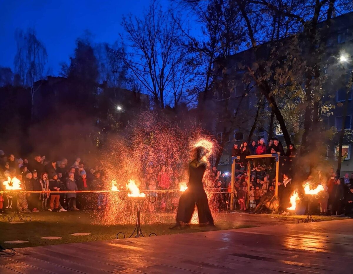 Vėliau renginio metu visus pašėlti kvietė choreografijos mokytojos Linos vadovaujamos šokio studijos „Baltas paukštis“ narių šokis „Matau tave“, o meninio ugdymo mokytoja Viktorija kartu su „Pelėdžiukų“ grupės vaikais atliko muzikinį kūrinį „Žibintas“. Vakarą užbaigė įspūdingas ir ilgai atmintyje dar išliekantis „Ugnies šou“ pasirodymas.