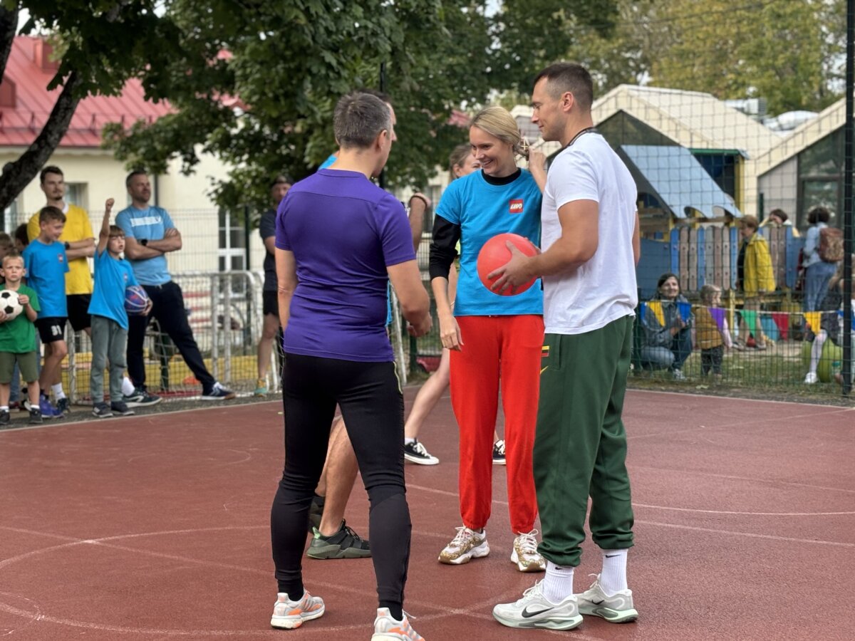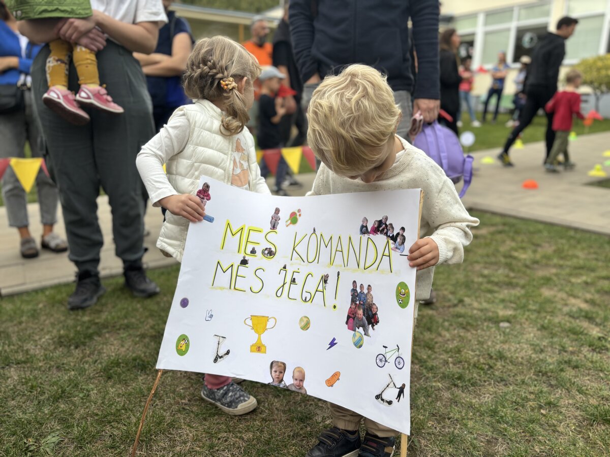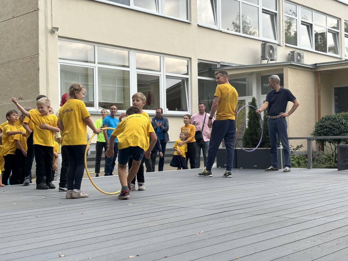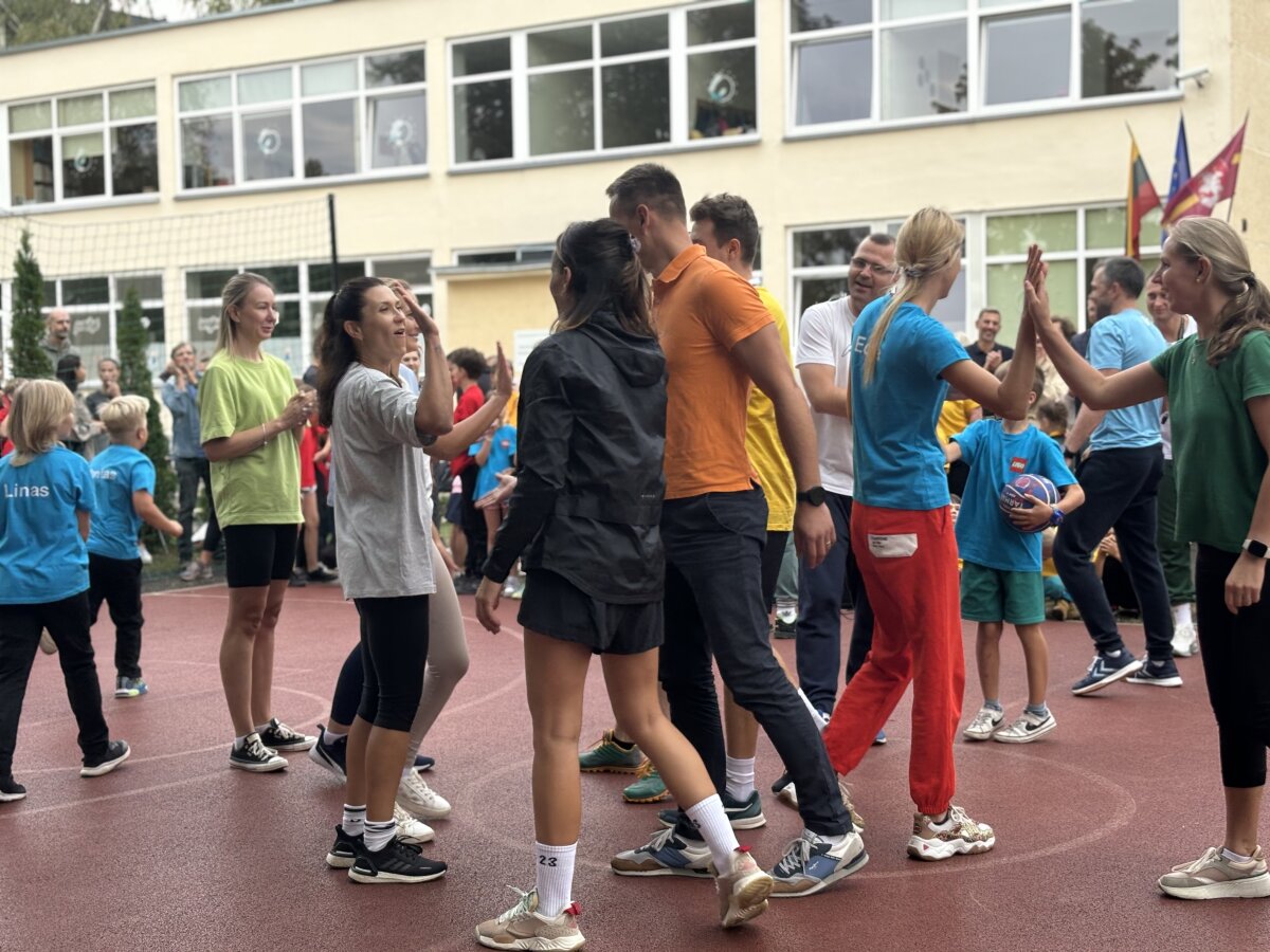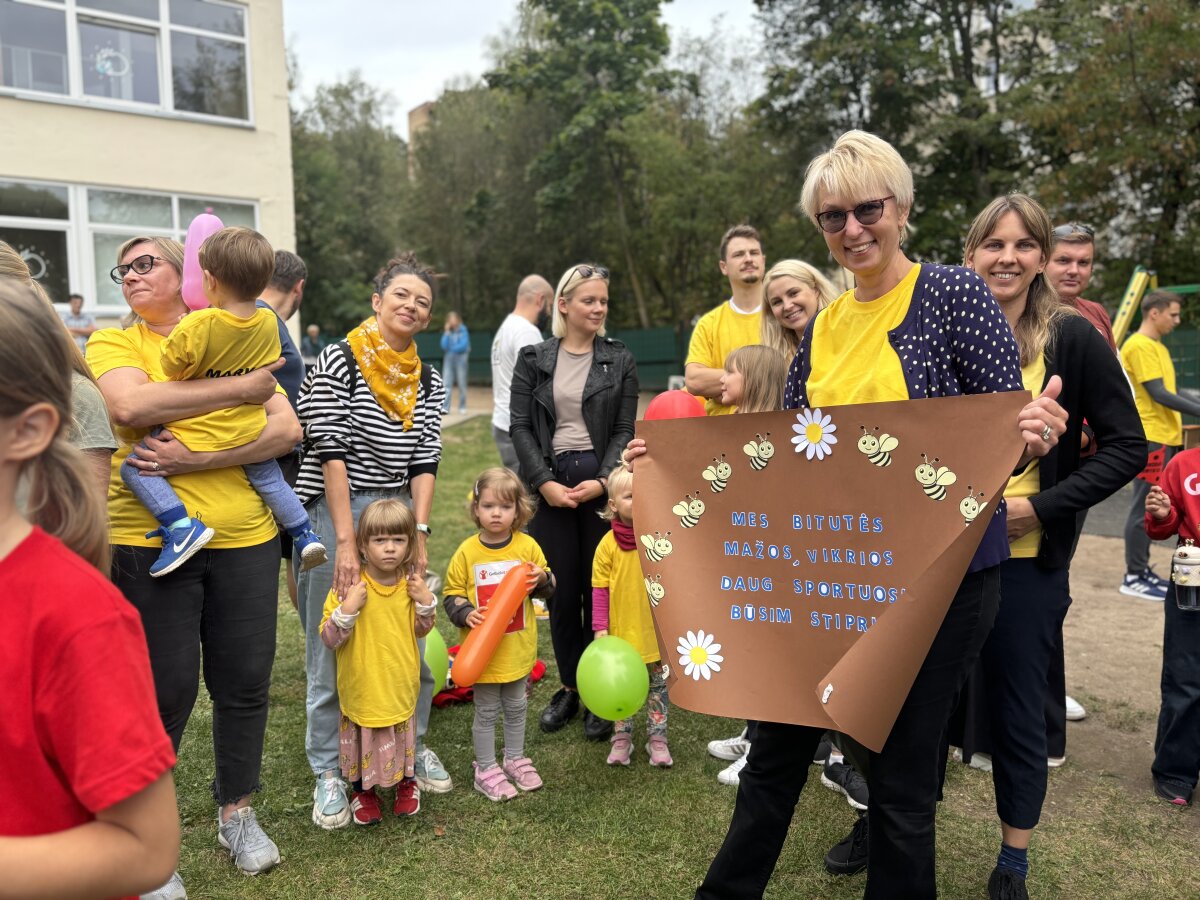 Vėliau visų laukė smagios estafetės ir įvairios rungtys, kuriose dalyvavo tiek vaikai, tiek tėvai. Kieme buvo įrengtos skirtingos aikštelės, kur kiekvienas galėjo išbandyti savo greitį, vikrumą ir komandinį darbą. Vaikai rungėsi greitojo bėgimo, šuolių per kliūtis ir kitose įdomiose estafetėse, o tėvai juos aktyviai palaikė bei patys dalyvavo tėvų ir vaikų komandų varžybose.