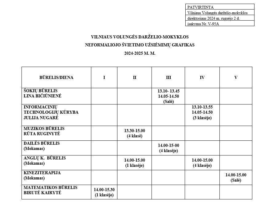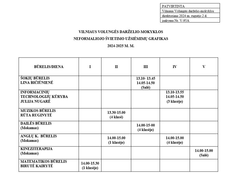 Būrelių grafikas 1 - 4 klasių mokiniams.