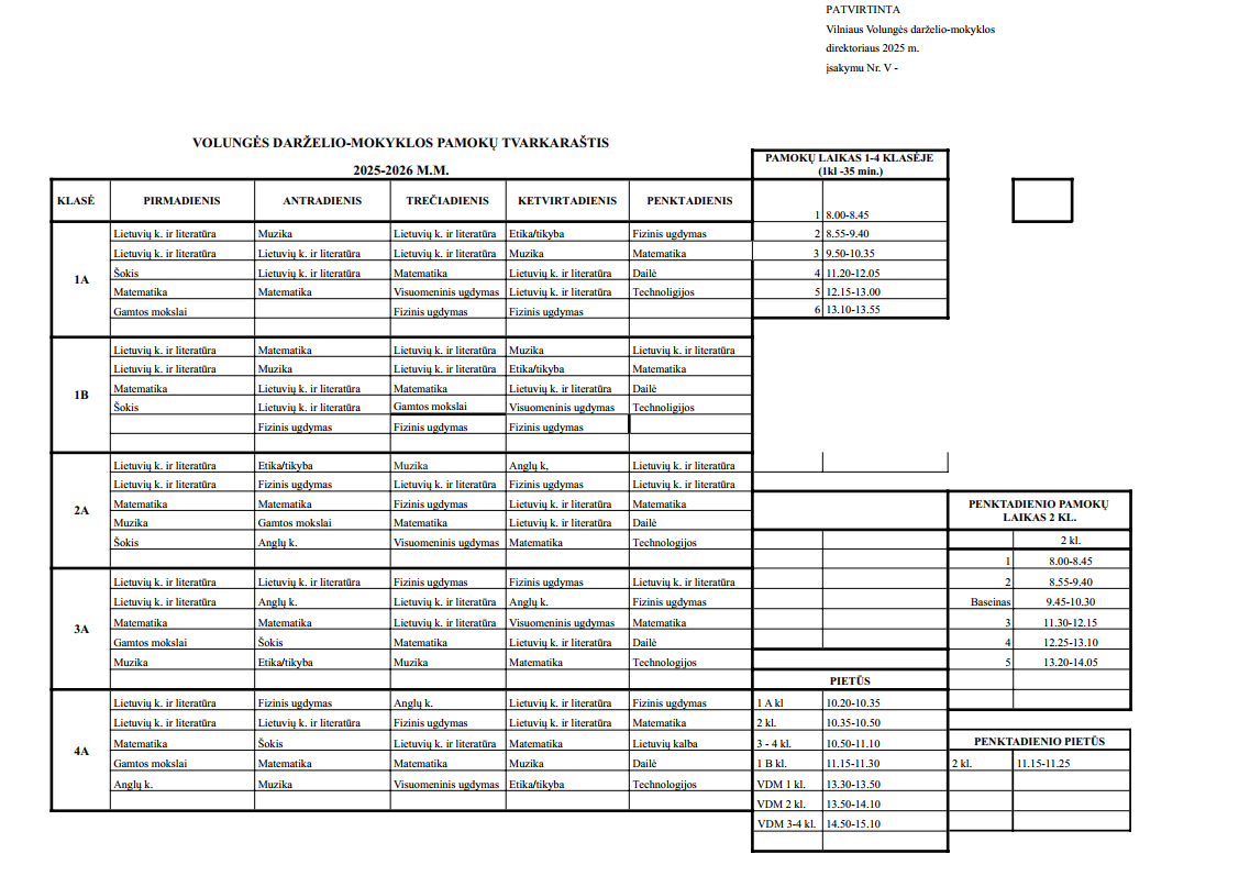 Pamokų tvarkaraštis 2025-2026 m. m.